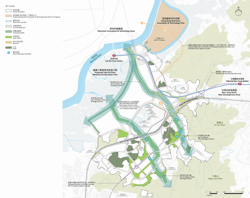 新田科技城位於北部都會區的核心地帶,毗鄰深圳皇崗和福田的創科區域,將成為創科發展集群的樞紐,確立「南金融、北創科」的新產業布局。